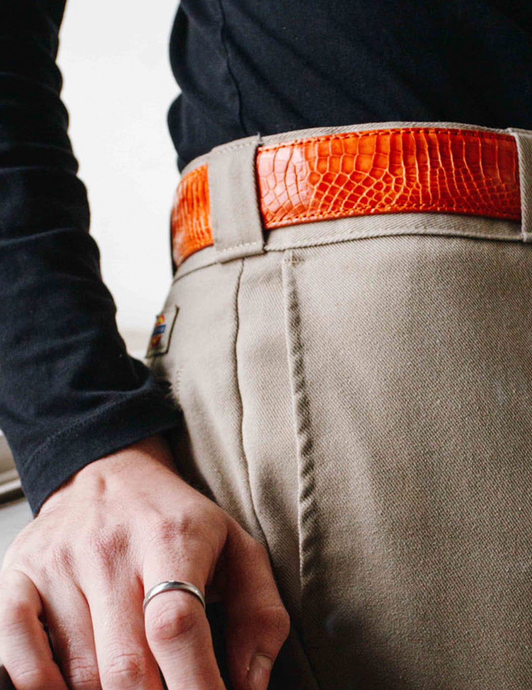 An elegant belt that strikesthe perfect balance between Western heritage and urban lifestyle,blending bold contrasts with refined detailing. Meticulously crafted for men and women using premium alligator leather.